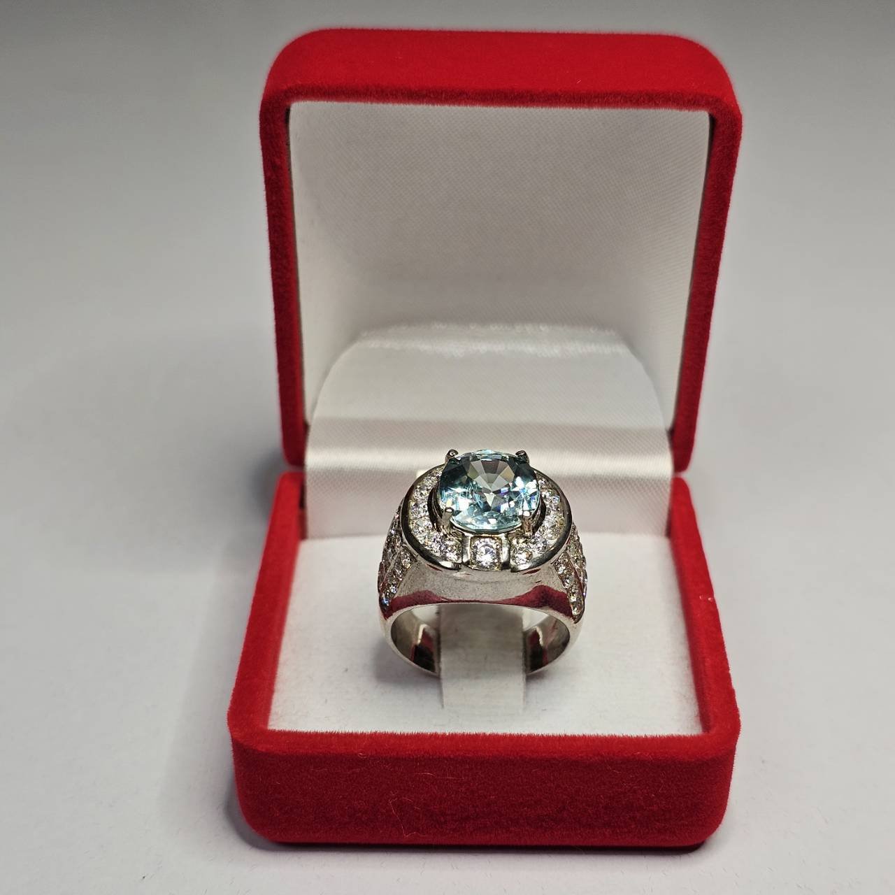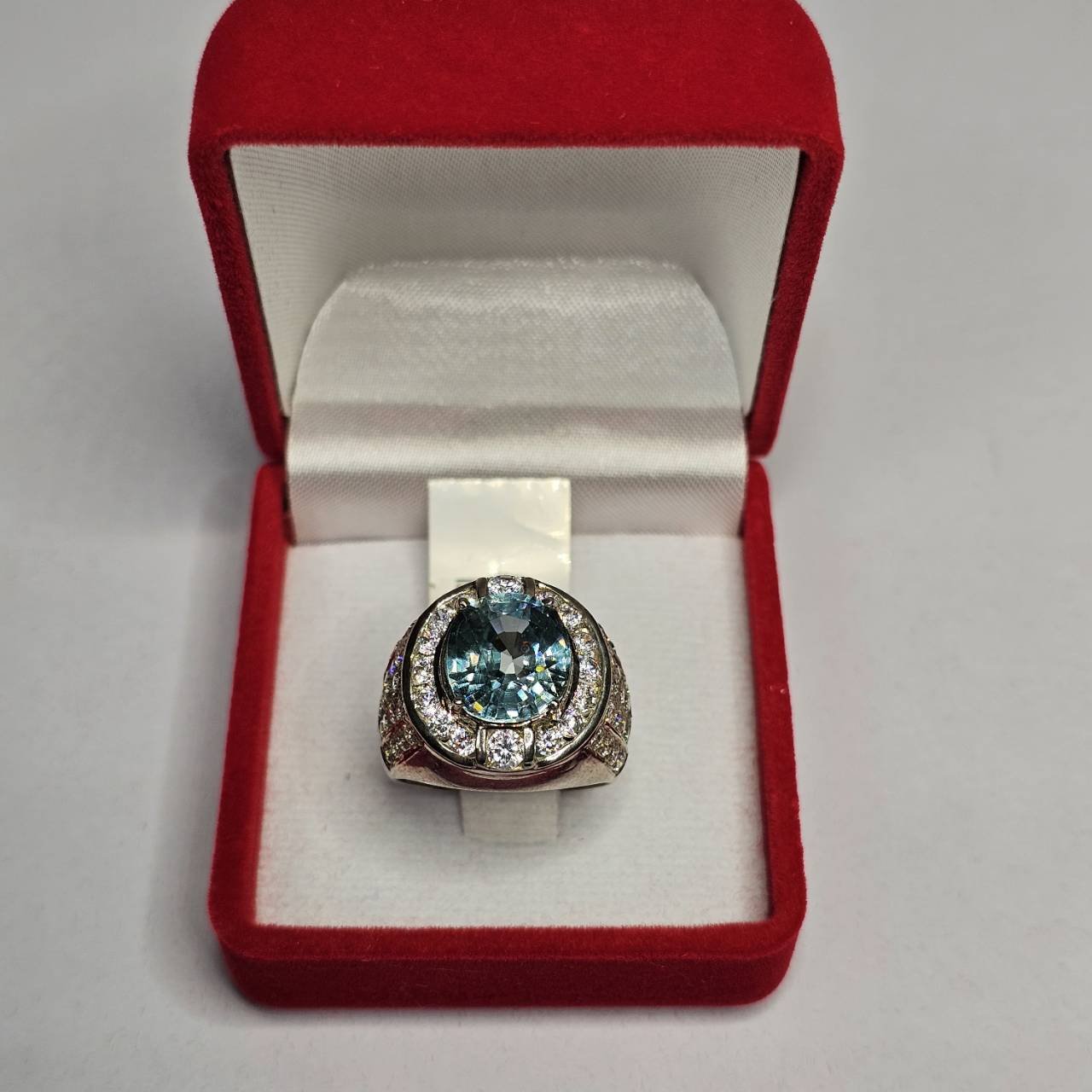 แหวน "เสน่ห์แห่งความมั่นคง" พลอยเพทายแท้สีฟ้าอ่อน ดีไซน์บารมีราชา! เสริมความสง่างามและความมั่นใจในทุกบทบาท! แหวนวงนี้โดดเด่นด้วย พลอยเพทายแท้ (Zircon) เม็ดเดี่ยวขนาดใหญ่ สีฟ้าอ่อนใส ถูกฝังอย่างแข็งแรงบนตัวเรือนที่ หนาและภูมิฐาน สไตล์แหวนผู้ชาย พลอยหลักถูกโอบล้อมและประดับบนก้านแหวนด้วย เพชร/พลอยเล็กๆ สีขาวที่เพิ่มประกายหรูหราอย่างลงตัว นี่คือแหวนที่แสดงถึง รสนิยมชั้นเลิศ และ ความสำเร็จ ใส่แล้วดูดีมีระดับ และเสริมความน่าเชื่อถือในทุกการติดต่อ!